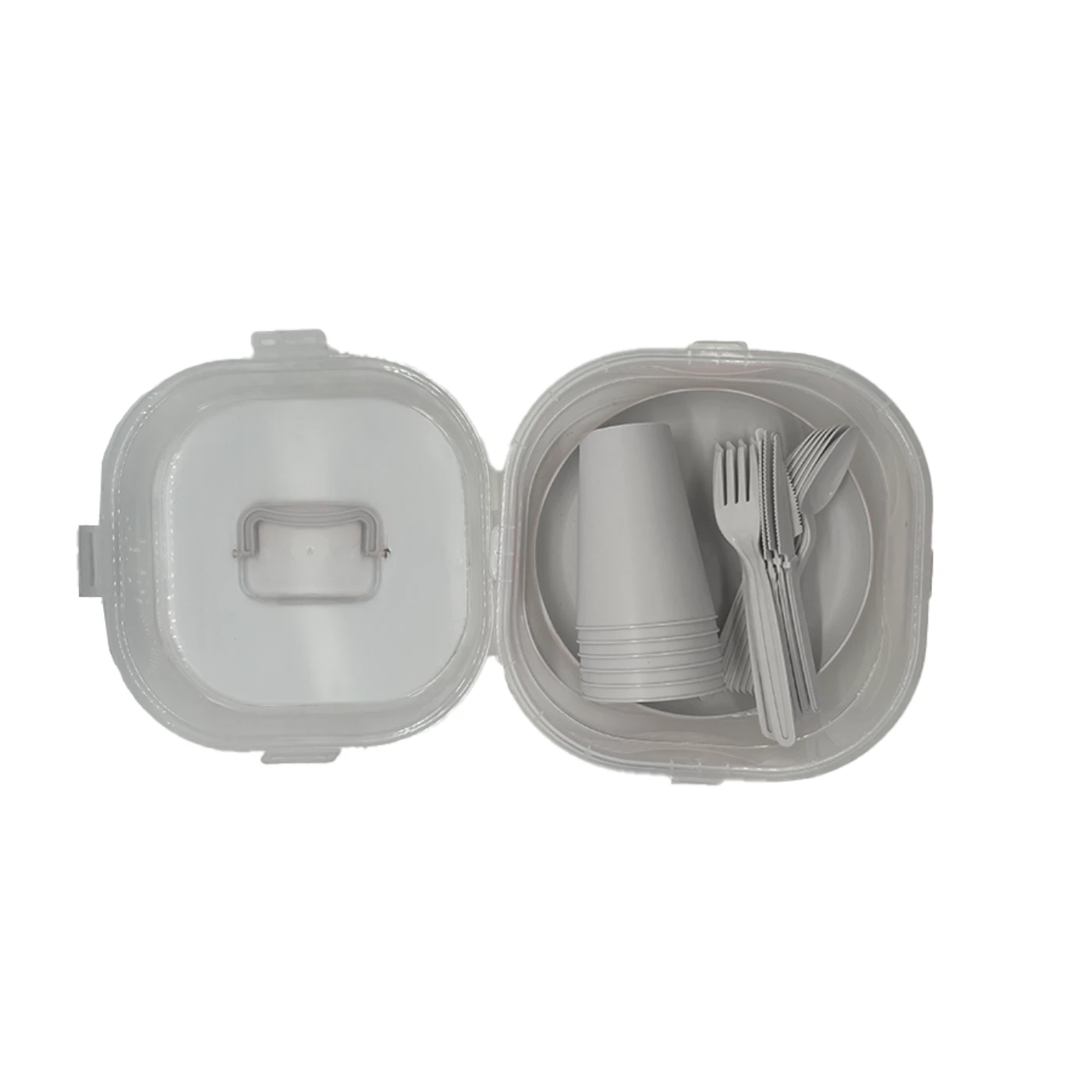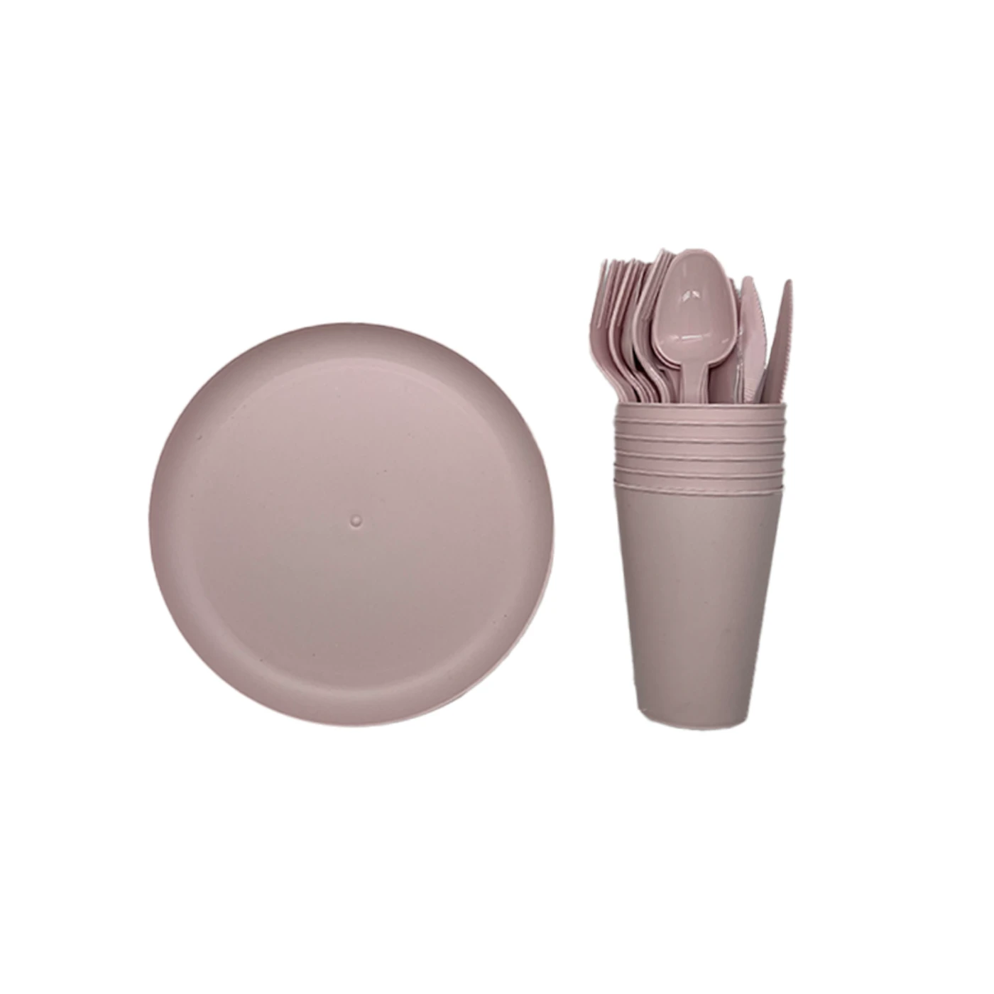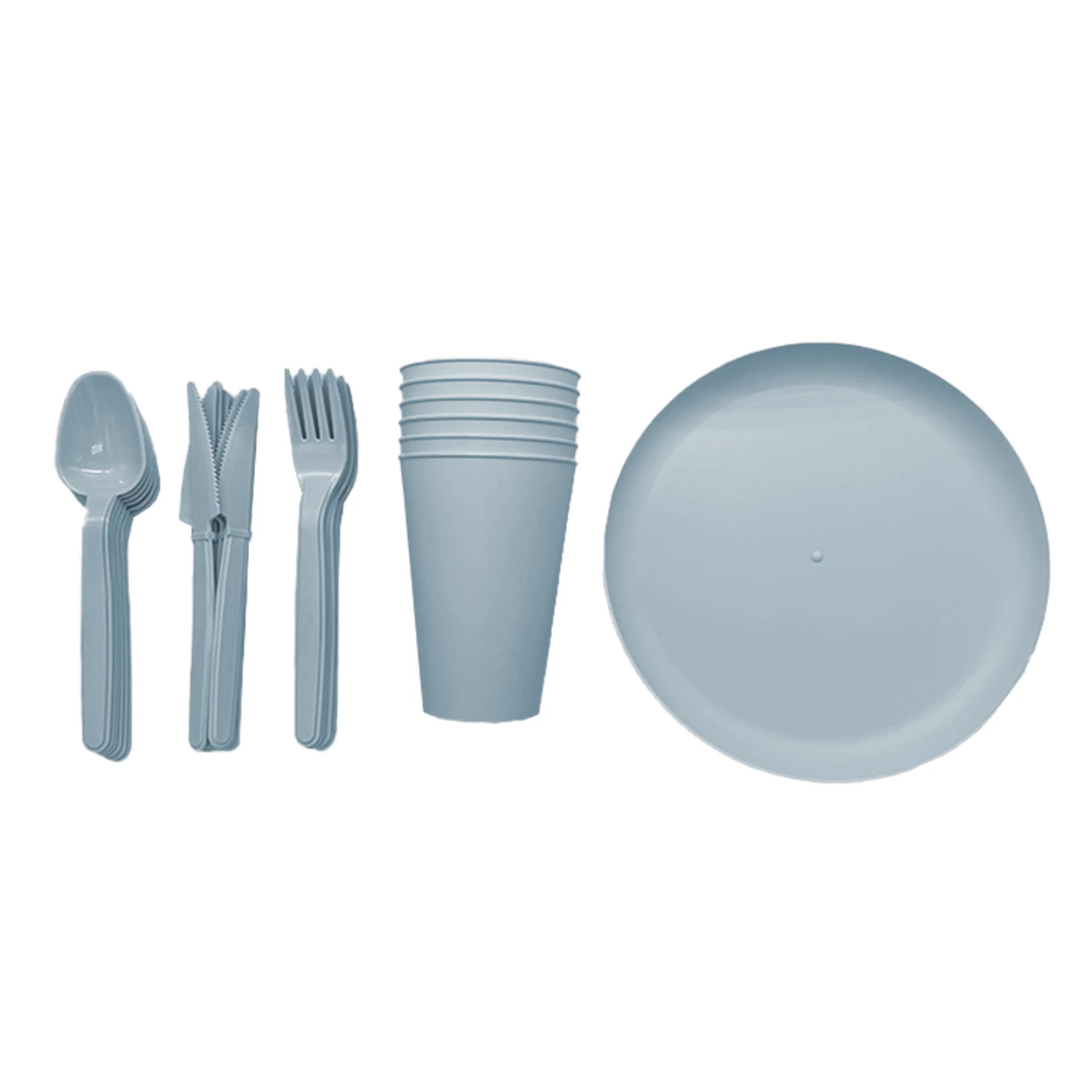 ערכת כלי אוכל רב-פעמית ונוחה, מיועדת לשימוש חוזר ושמירה על הסביבה. הערכה כוללת סט מלא לכל 6 סועדים, עם צלחות, כוסות וסכו"ם מלא (מזלג, סכין וכף). כל החלקים עשויים מפלסטיק PP איכותי, ללא BPA, ומתאימים למזון ומשקאות חמים.