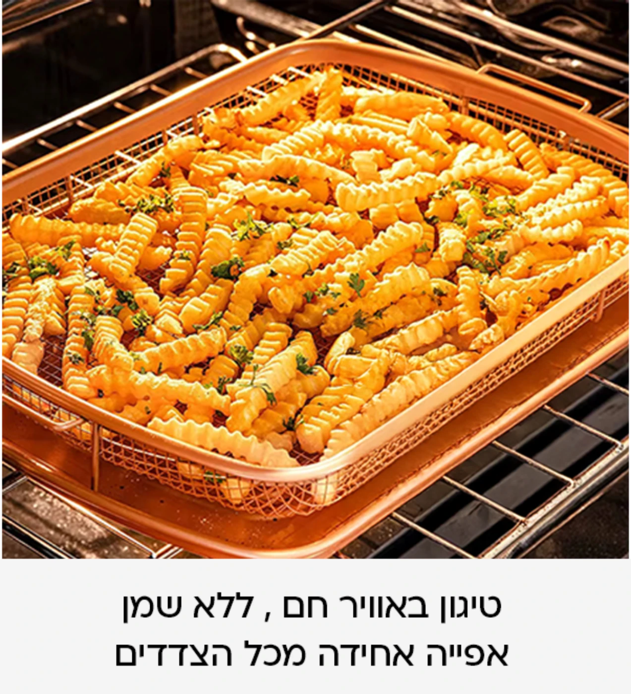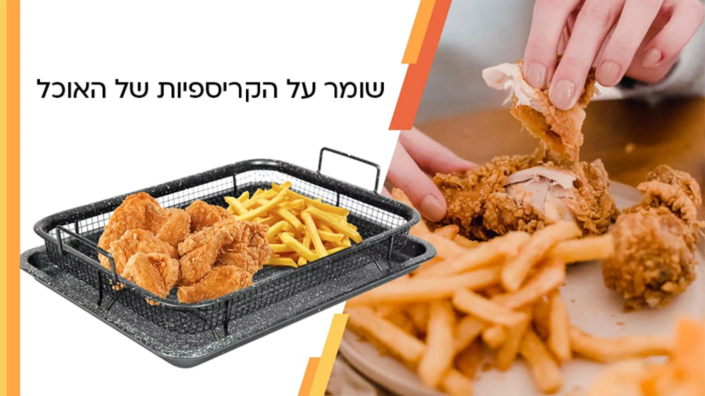קריספר מסדרת השף שגב משה, מאפשר אפייה וטיגון ללא שמן, לקבלת מרקם קריספי מושלם. מצופה NON-STICK עמיד לחום גבוה, מתאים לשימוש בתנור ובמדיח כלים.