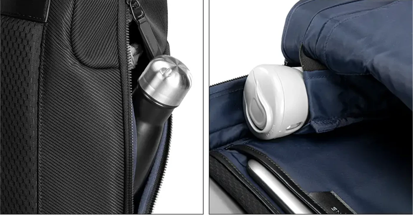 תאים חכמים: תא קדמי לגישה מהירה, תא צדדי לבקבוק מים או מטריה, ותא נסתר להגנה מפני גניבות.