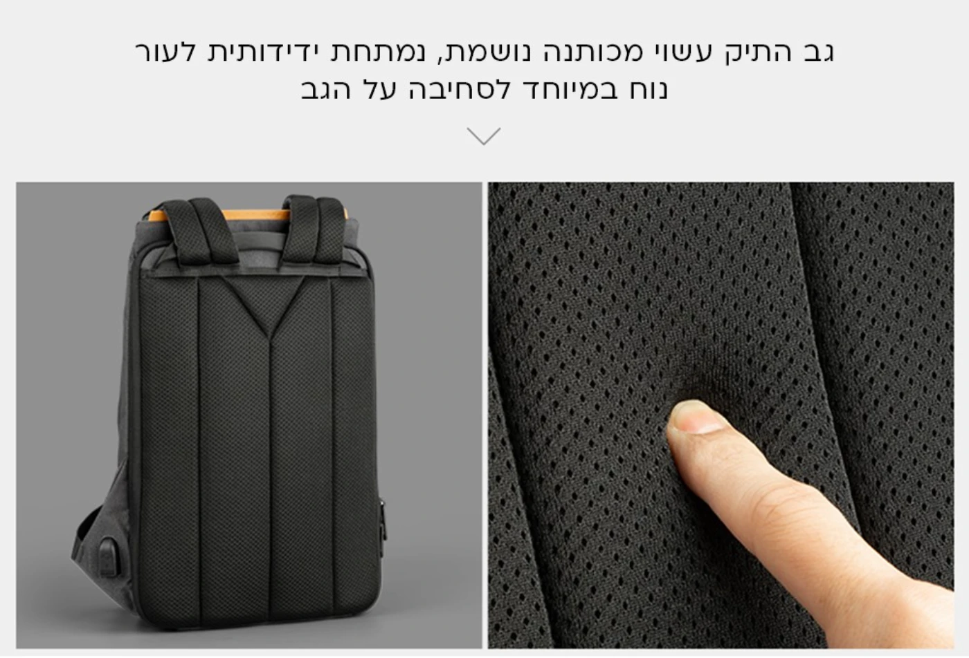 הבחירה האידיאלית לנוחות ובטיחות יומיומית. תיק קל משקל עם תא מגן זעזועים למחשב עד 15.6 אינץ', חיבור USB מובנה, חלוקה פנימית חכמה ועיצוב בטיחותי עם רוכסנים נסתרים למניעת גניבות, זהו תיק מודרני וקל משקל המותאם לאנשים בתנועה. אידיאלי לימים עסוקים ולנסיעות .