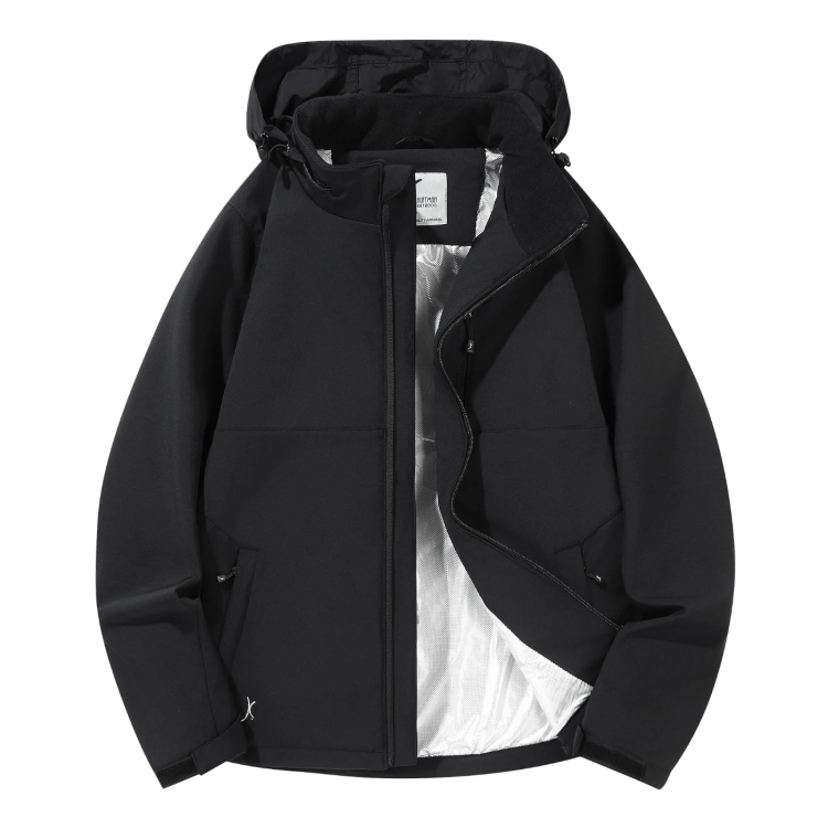 מעיל סופטשל תרמי מבית Joseph Kauffman, עמיד במים וחוסם רוח, עם טכנולוגיית Thermic Reflection לשמירה מקסימלית על חום הגוף. קל משקל ונוח לשימוש יומיומי, כולל כובע נשלף וכיסים עם רוכסנים לשמירה על חפצים.